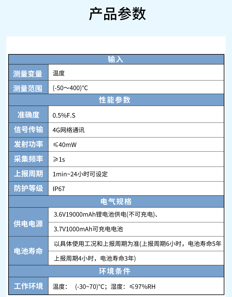 產品名稱:4G通訊 電池供電 低功耗 0.5%精度