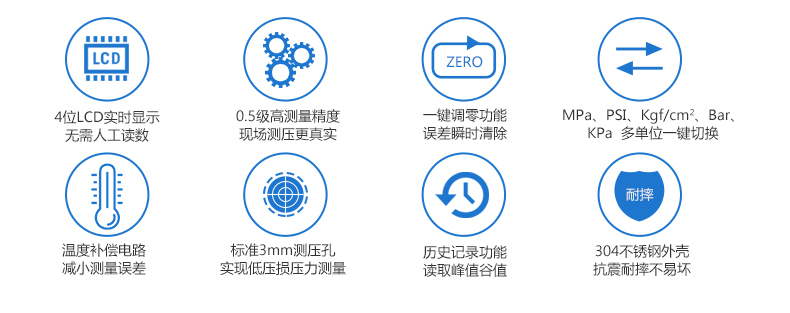 產品描述:高精度數字壓力表,內置高精度壓力傳感器,能夠準確的實時顯示壓力,并且具有精度高,長期穩定性好的特點。